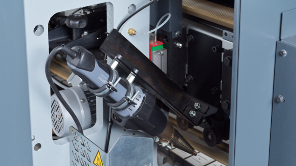 Se uporablja za predgretje robov plošč in s tem zagotavlja višjo trdnost lepilnega spoja.